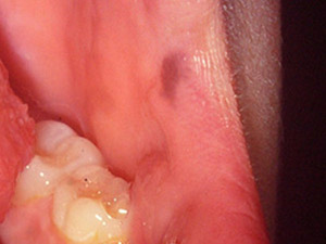 The majority of nevi develop on the skin, making the oral mucosa a rather rarely affected area. The average age of affected humans is 38 years. Rare cases of nevi turning into malignancy are reported.